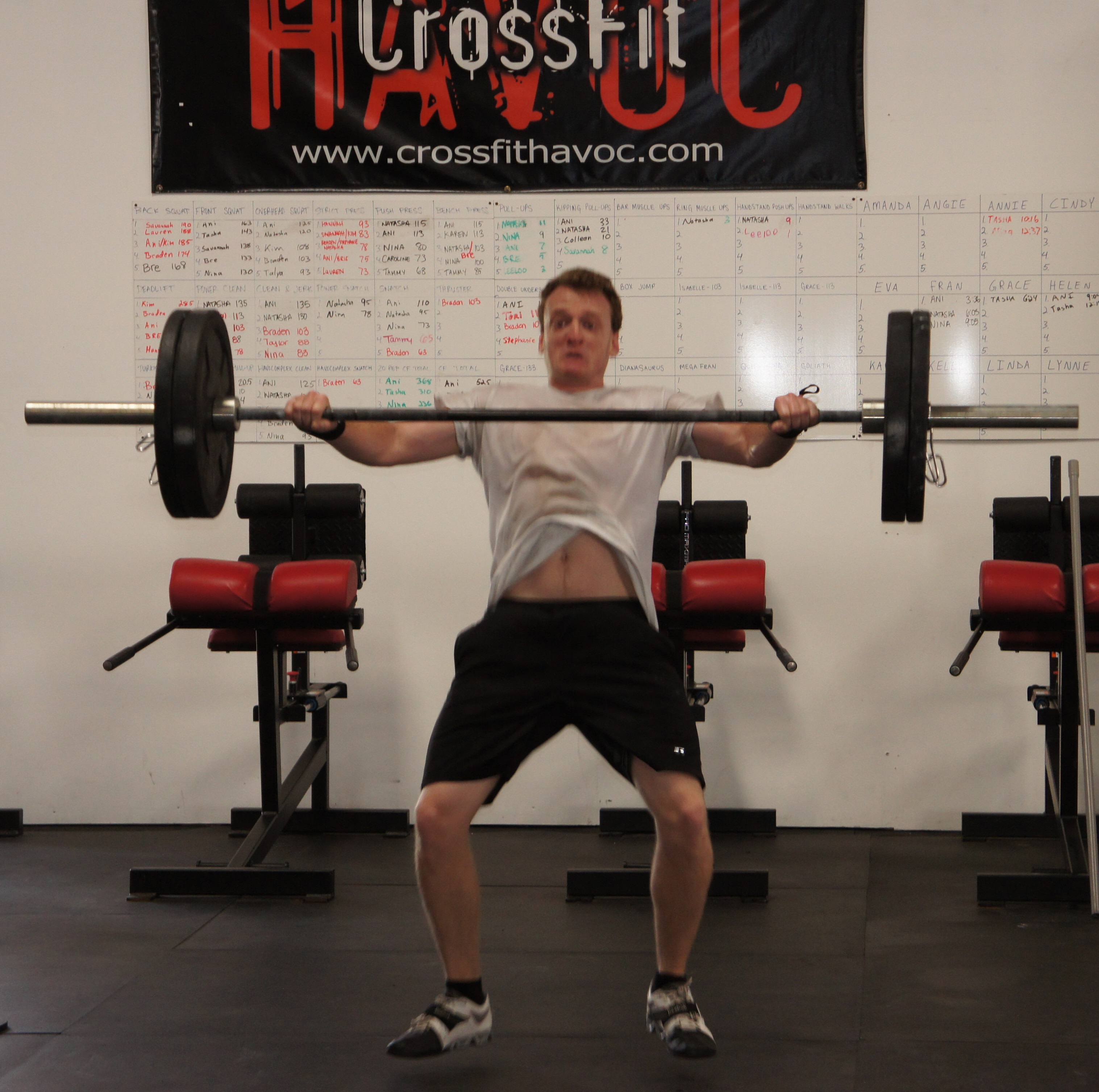 1. Front Squat: 2 Reps every minute on the minute for 10 minutes