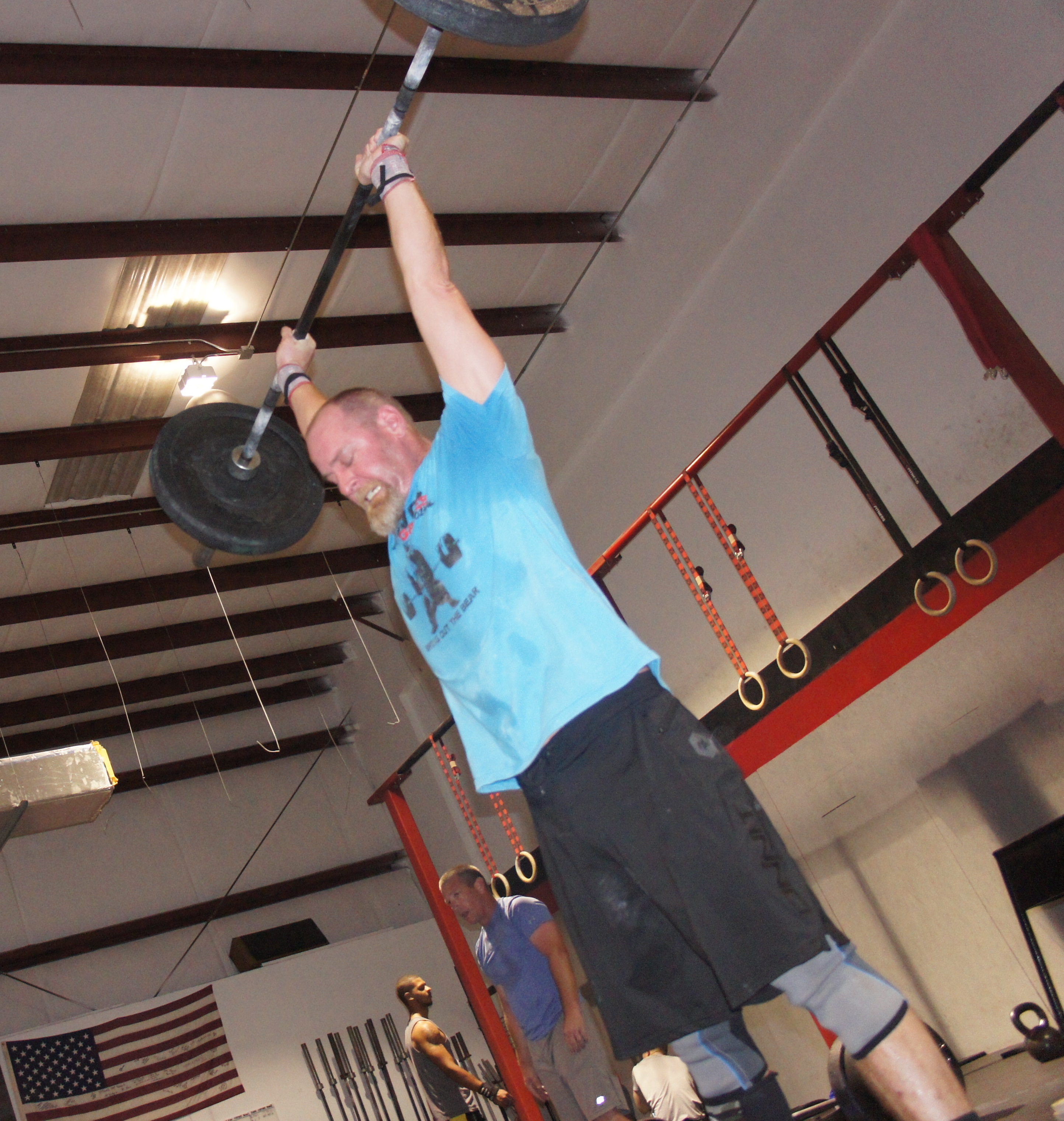 2. WOD with Hang snatches @ 115 – 49 reps / 50 toes to bar instead of sit ups – took 4:50 got only 2 burpees
