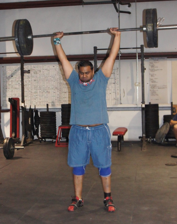 - Every 90 seconds for 15 minutes: Overhead squat x 2 reps (start with 75% and build)